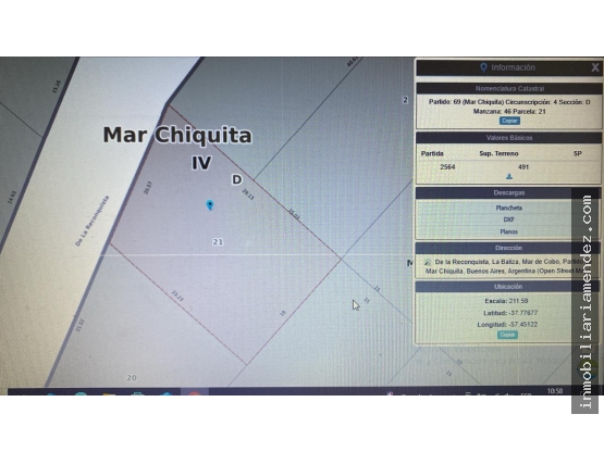Lote baldio, a 100 mts del mar y 30 mts de la avenida principal, 491 mts 2 (18 mts2 de frente) posibilidad de dos viviendas en su frente o uso comercial por su cercania a Avenida y costa. Muy buen entorno, consulte por mas detalles.