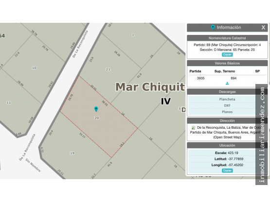 Importante lote, a 100 mts 2 del mar, en la mejor zona de Mar de Cobo. Ideal para 2 viviendas o complejo turistico. Muy buen entorno, vereda de sol y con vista a los medanos desde su contrafrente.